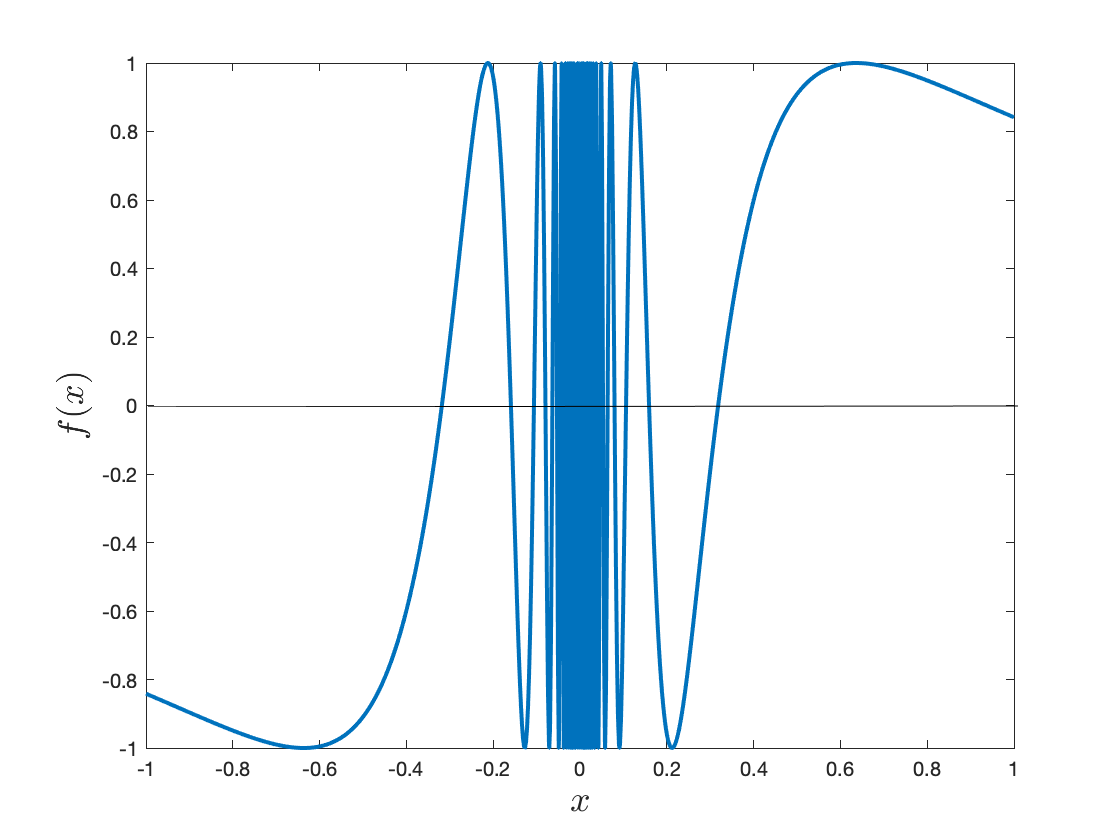 Figure 10. Graph of \(f(x) = \sin(1/x)\text{.}\)